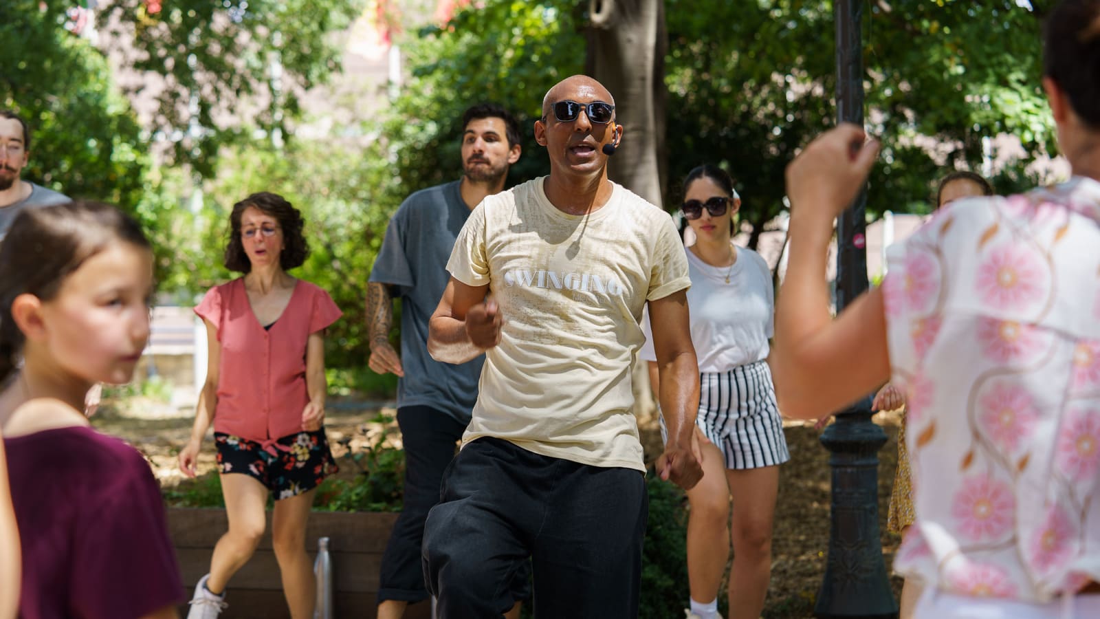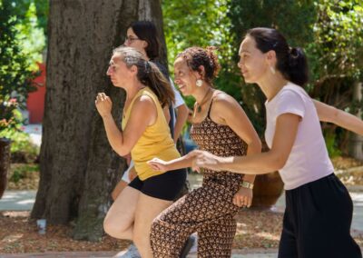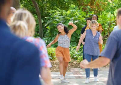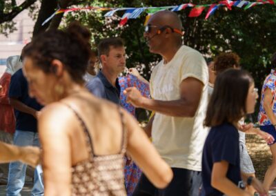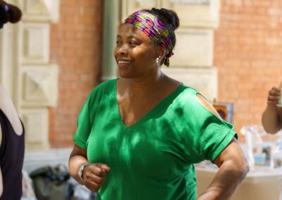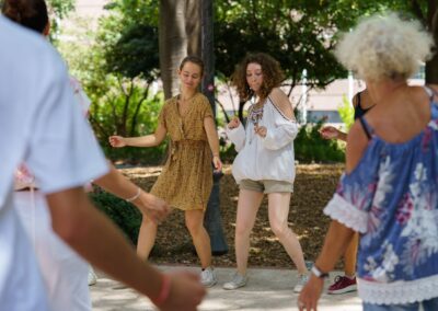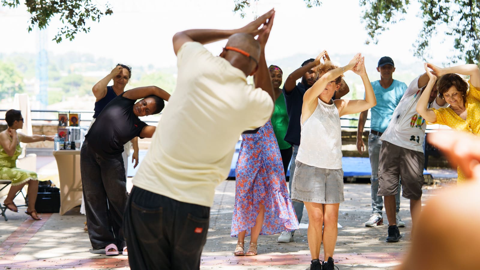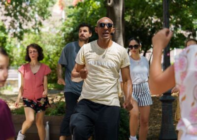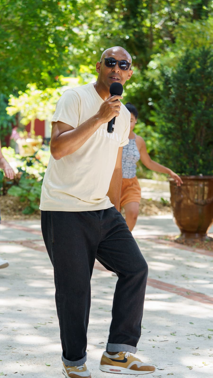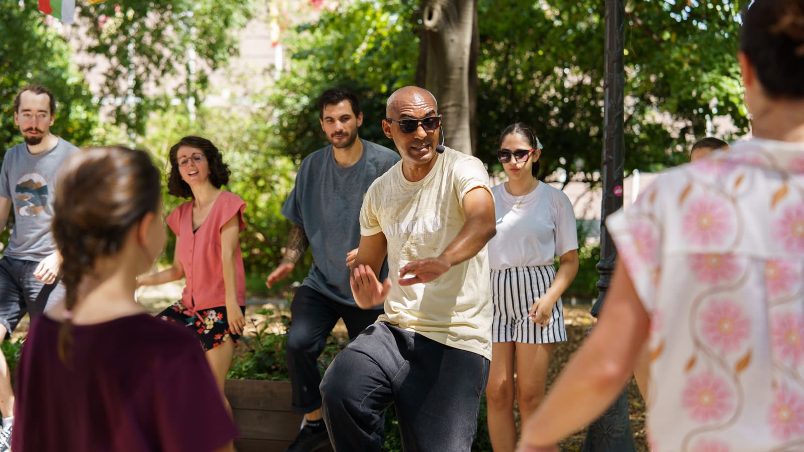 Rémy Kouakou Kouamé, directeur artistique du festival Swinging Montpellier, a animé une Jam pédagogique ouverte à tous. Une jam pédagogique est un atelier de danse en musique, où une progression dans la gestuelle est proposée afin d’explorer le répertoire jazz. Ludique et intuitif, ce dispositif est très inclusif et apprécié des danseurs et non danseurs. Le travail du mouvement est associé à des exercices de musicalité (écoute musicale) et de polyrythmie. Enfin, la session s’est clôturée par un temps de parole et d’échanges et une pratique sociale (bal dans la rue).