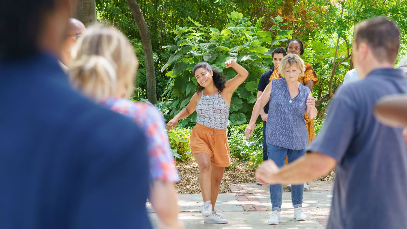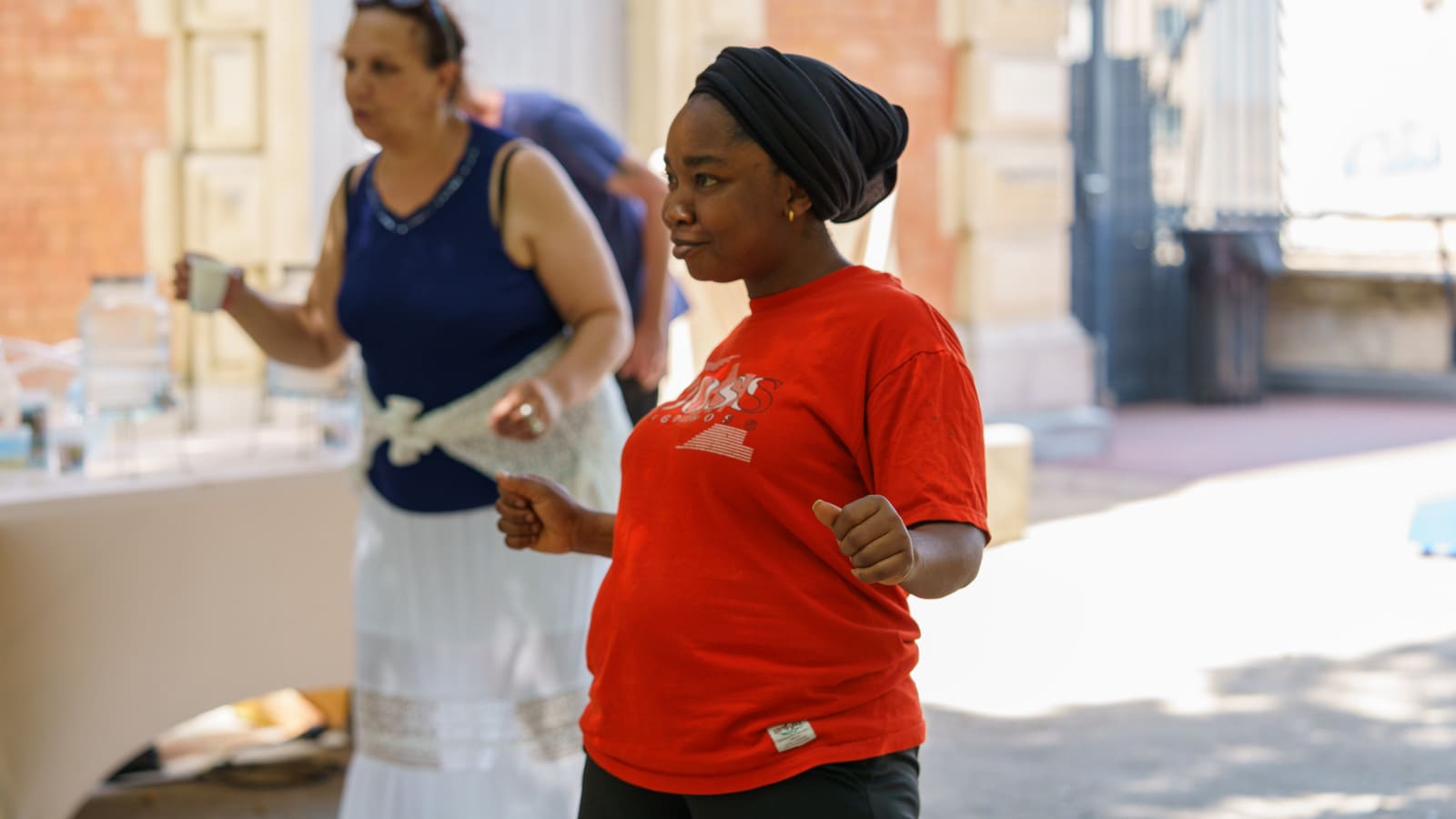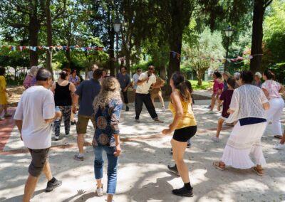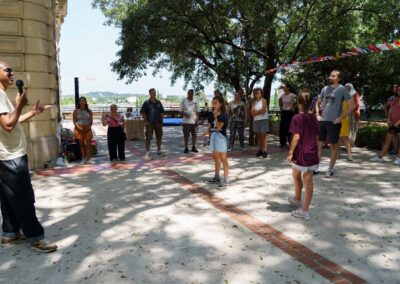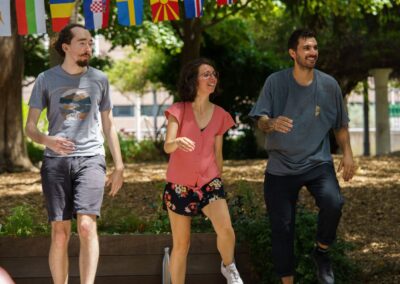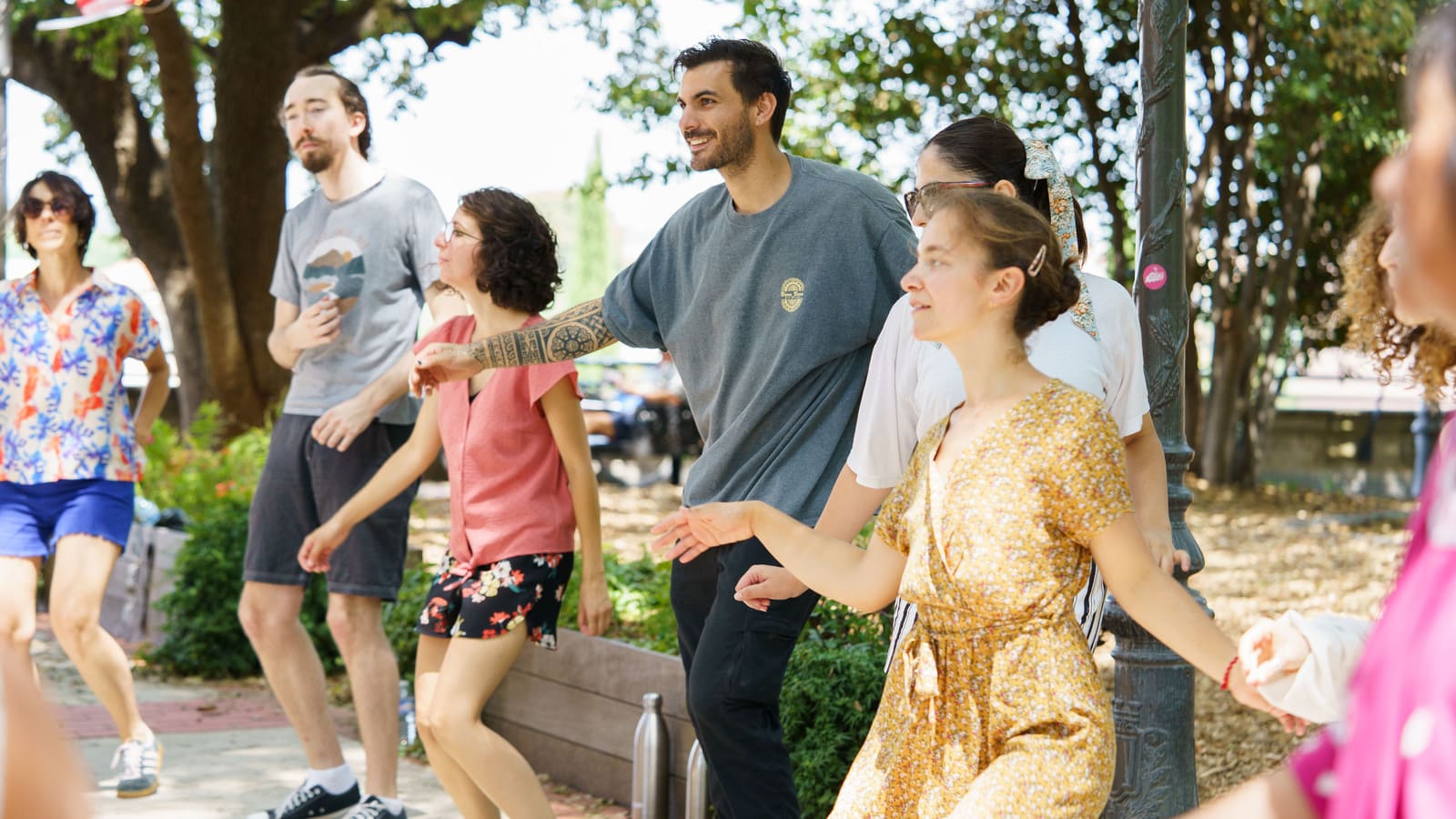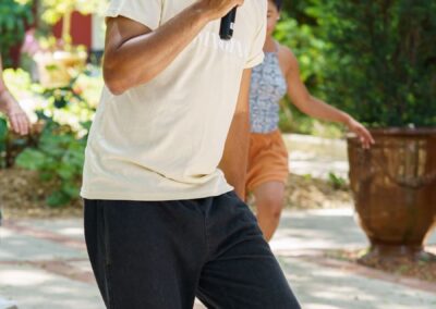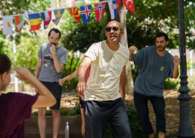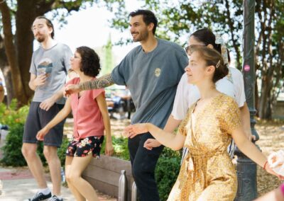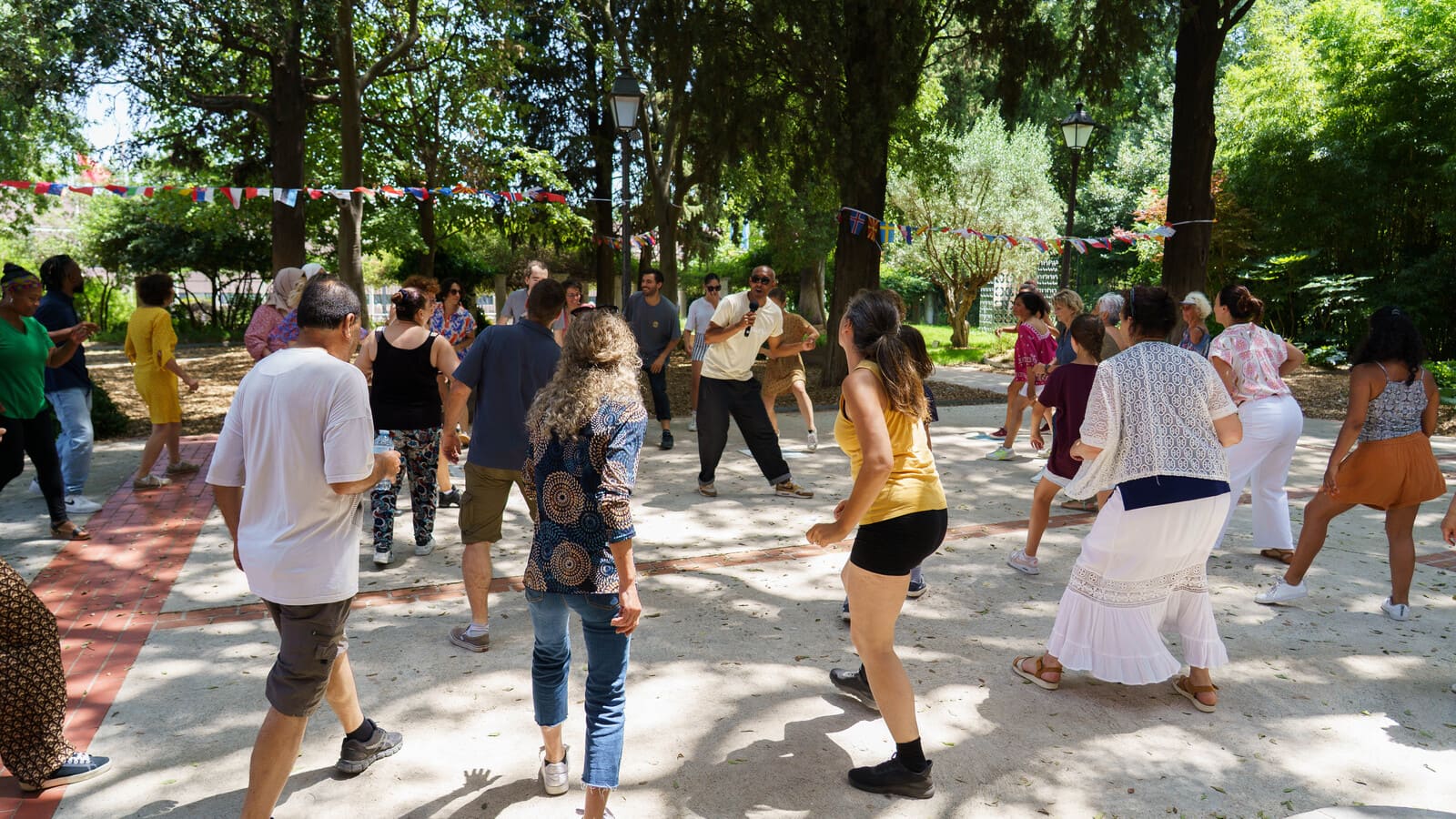 Rémy Kouakou Kouamé, directeur artistique du festival Swinging Montpellier, a animé une Jam pédagogique ouverte à tous. Une jam pédagogique est un atelier de danse en musique, où une progression dans la gestuelle est proposée afin d’explorer le répertoire jazz. Ludique et intuitif, ce dispositif est très inclusif et apprécié des danseurs et non danseurs. Le travail du mouvement est associé à des exercices de musicalité (écoute musicale) et de polyrythmie. Enfin, la session s’est clôturée par un temps de parole et d’échanges et une pratique sociale (bal dans la rue).