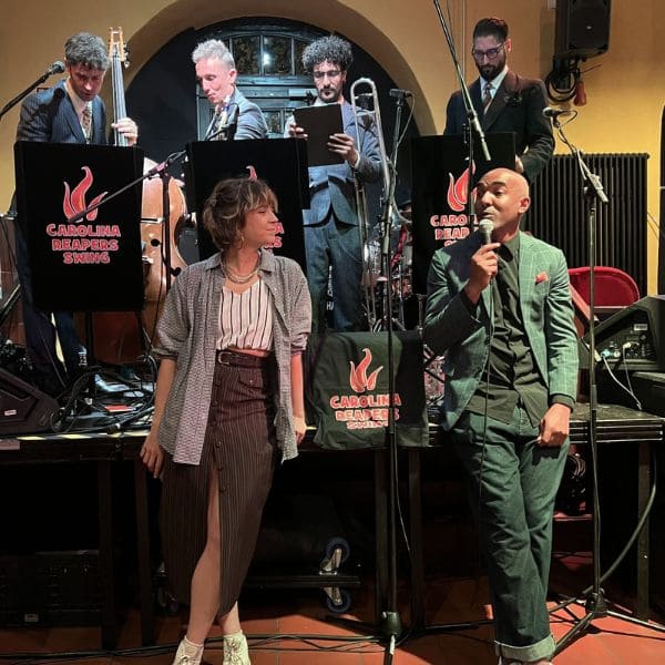Moment phare de la soirée, le concert des Carolina Reapers Swing a littéralement enflammé la piste. Avec un swing irrésistible, une énergie débordante et une bonne dose de folie, le groupe a conquis le public dès les premières notes. Portés par une section rythmique résolument swing et une équipe de solistes talentueux et créatifs, les Carolina Reapers Swing ont offert un concert vibrant, ponctué de riffs hypnotiques, de solos audacieux et de voix pleines de charme. Chaque morceau, plein de spontanéité et de finesse, donnait une irrésistible envie de danser jusqu’à la dernière note.